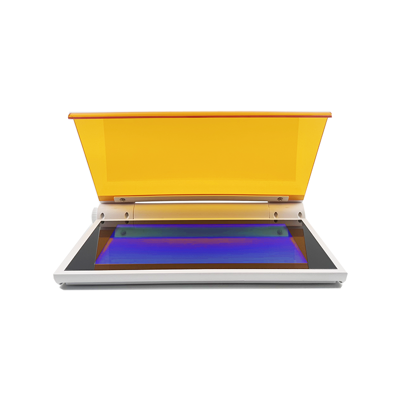 The blue LED transilluminator is a high-quality blue light transmission device, which is widely used for the observation of nucleic acid and protein gel staining. Blue LED light source, with amber filter cover, and use with nucleic acid-safe dyes with excitation wavelength of 450~495nm, can achieve perfect gel viewing and cutting effects without protective light filtering goggles.